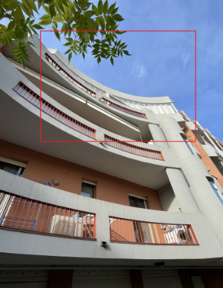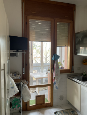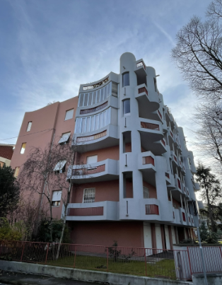 appartamento posto al p. 4 di un complesso condominiale con annesso garage al p.t., composto da: ingresso, cucina, pranzo e soggiorno, 2 camere da letto (di cui n. 1 con bagno privato), bagno, n. 2 terrazzi (di cui n. 1 verandato).