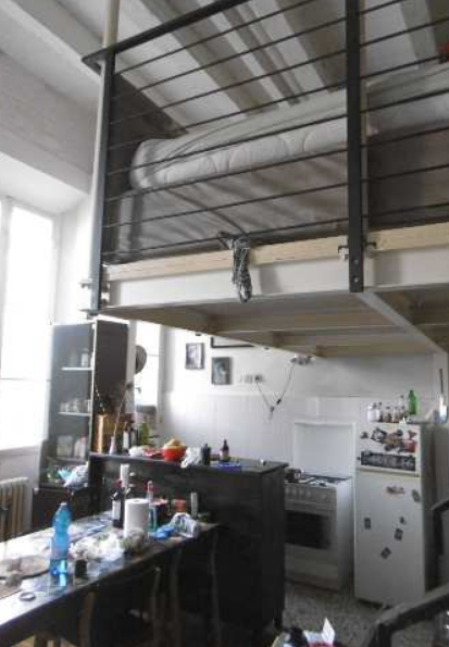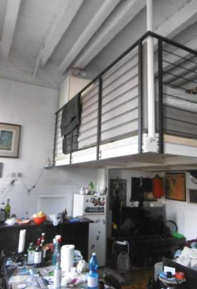 intera proprietà di un appartamento posto al primo piano con soppalco interno con servizio esclusivo al piano terra (vano ripostiglio) oltre parti comuni (androne di ingresso al piano terra, cortile e vano scale con esclusione del pianerottolo al secondo piano) e due vani ripostiglio al piano sottotetto.